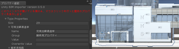 - BIMデータ特有の情報もUnity等に取り込むことが可能です。