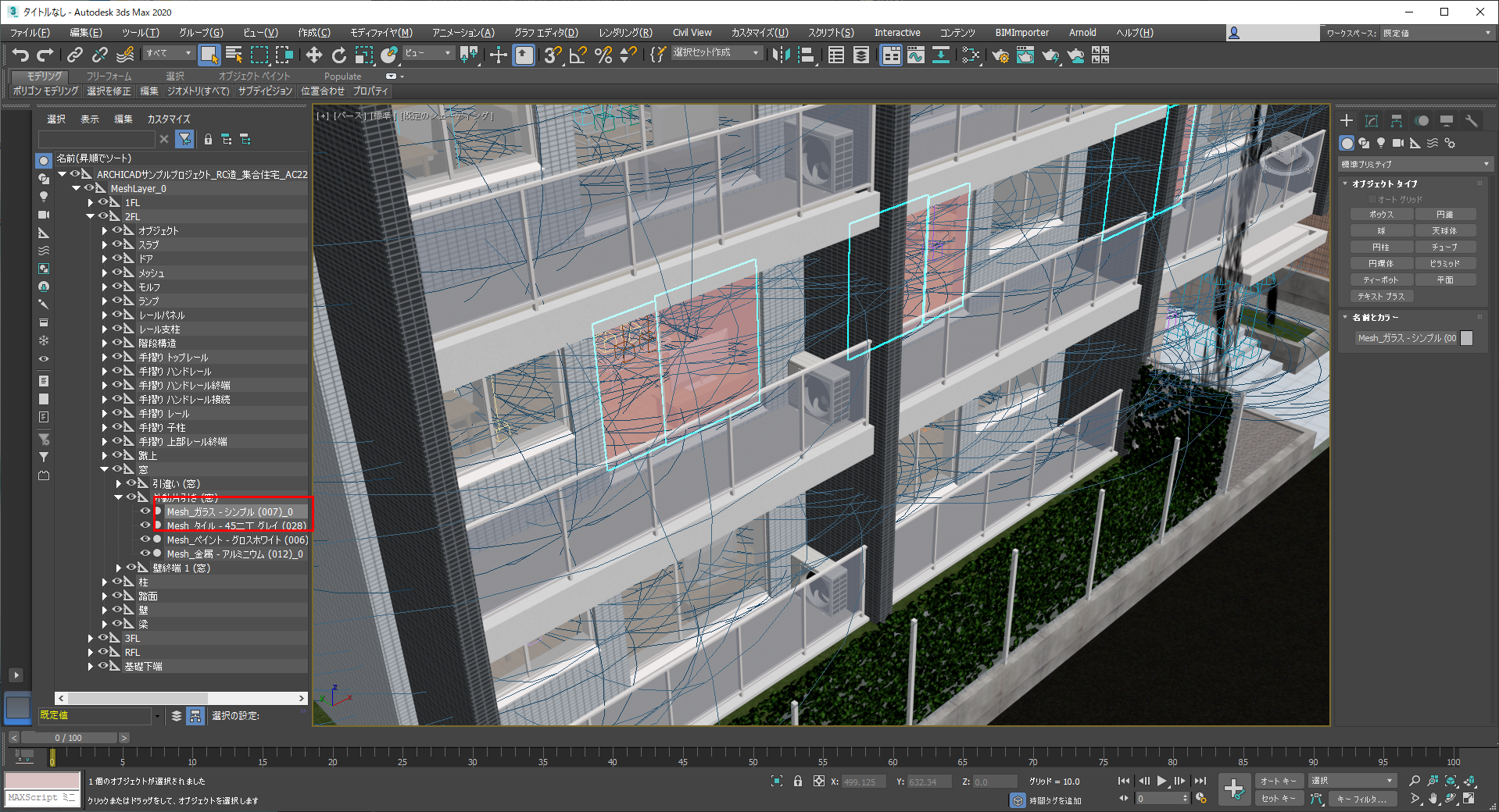 3ds MaxでBIMデータを取り込むときに、メッシュのマージ方法を選択することができます。