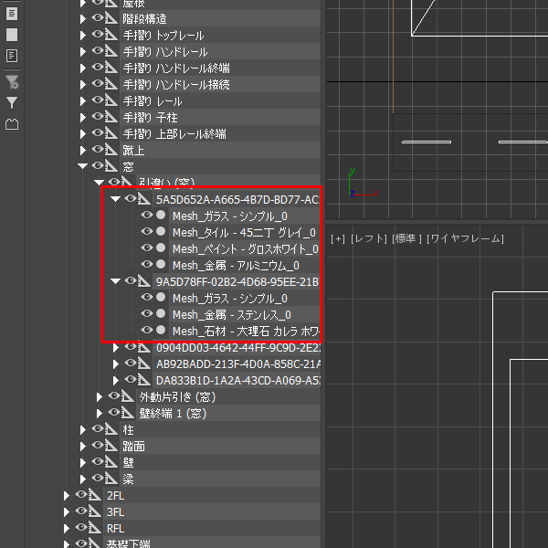この機能を使用して以下のように2階の窓のマテリアルだけ編集をするということが可能になります。