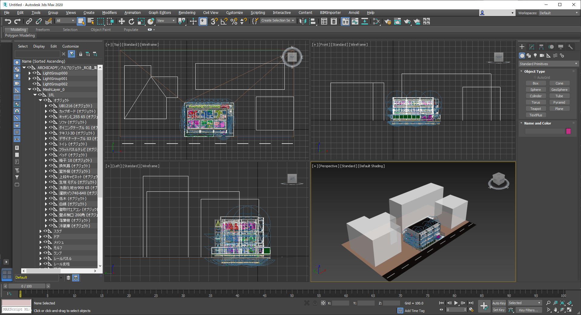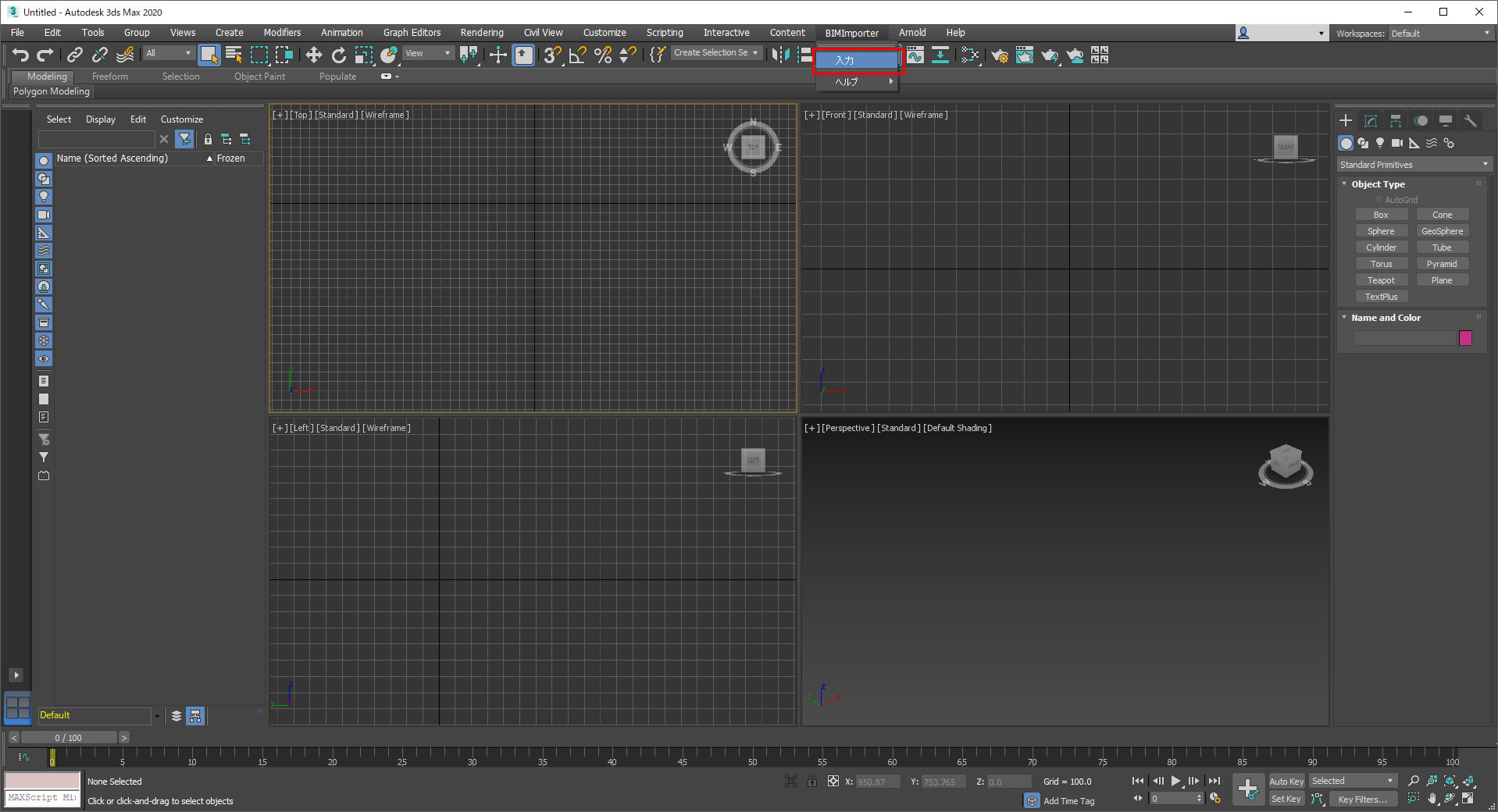 3ds Maxを立ち上げてBIMImporterメニューの入力を選択し先ほど出力したフォルダにあるvtuファイルを選択します