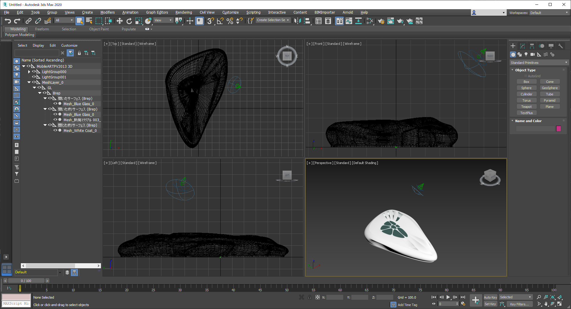 メッシュマージ方法の選択ダイアログでどのような階層構造でメッシュをマージするか決定し確定ボタンを押します