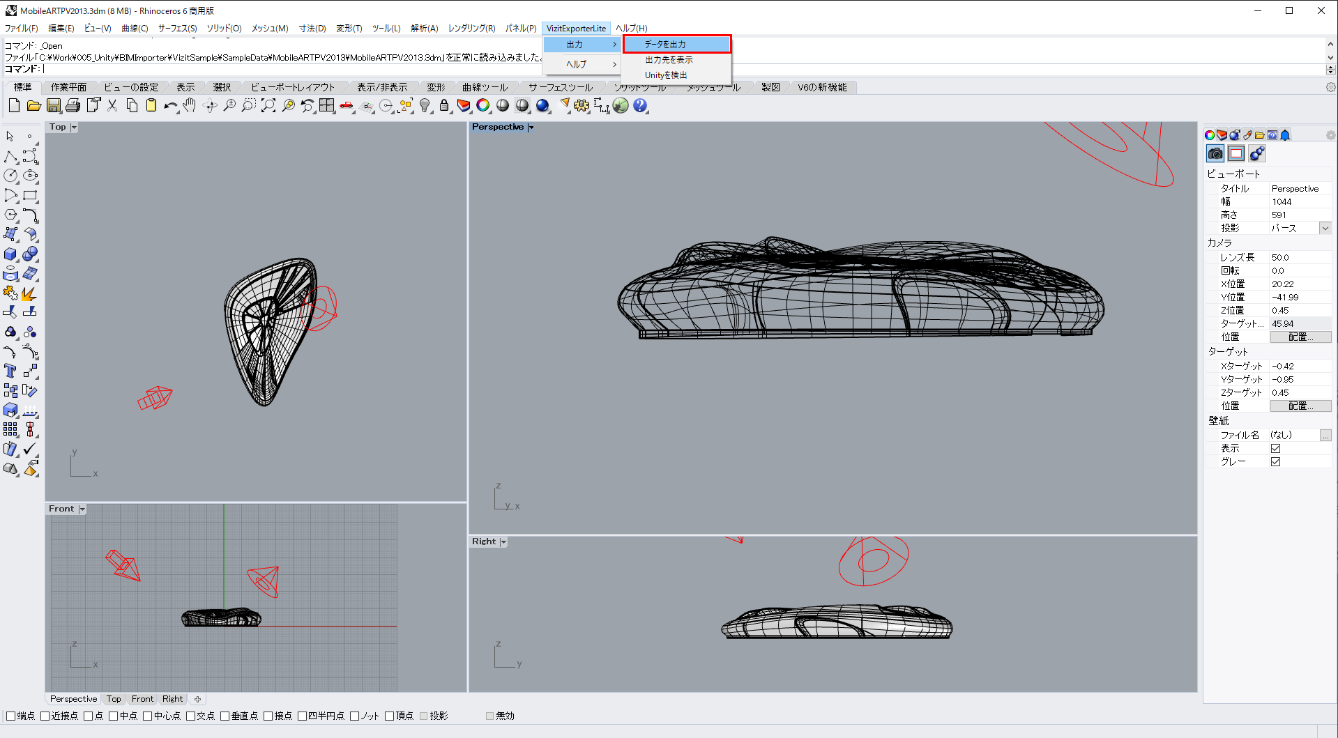 VizitExporterLite for Rhinocerosでデータ出力