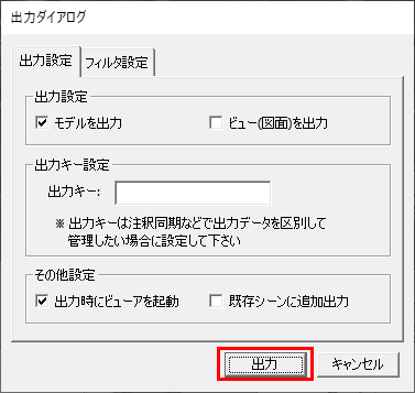 - ※「出力設定」タブの「モデルを出力」がOFFの場合は、利用頂けません。