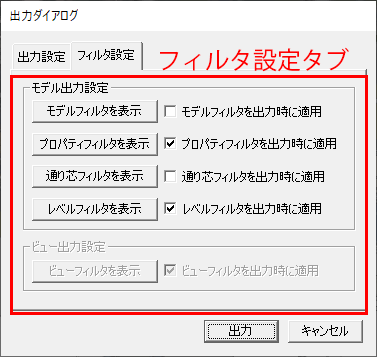 - ビューフィルタを出力時に適用