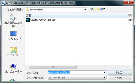 vzt選択ダイアログが出現するのでデータをまとめたいvztを指定します。
