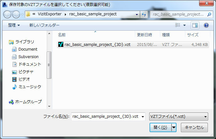 vzt選択ダイアログが出現するのでデータをまとめたいvztを指定します。