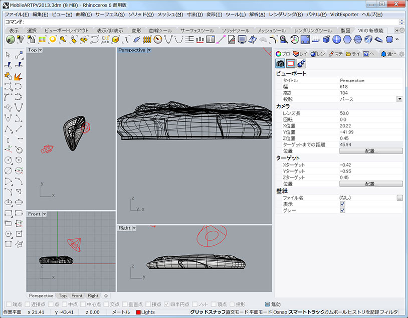 Rhinocerosを起動して、任意のプロジェクトを開きます。