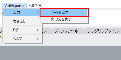 「VizitExporter」メニューの「データを出力」を押すと出力ダイアログが開きます。