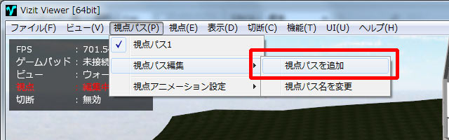 「視点パス」メニューから「視点パスを追加」ボタンを押します。