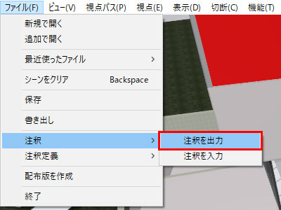 「ファイル/注釈を出力」を選択すると、任意の場所に現在の注釈をファイルとして保存します。(注釈が存在しない場合は「ファイル/注釈を出力」は表示されません。)