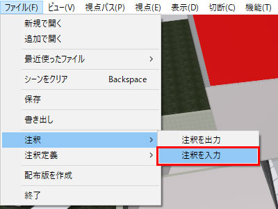 「ファイル/注釈を入力」を選択し、保存した注釈ファイルを読み込むと注釈をインポートします。
