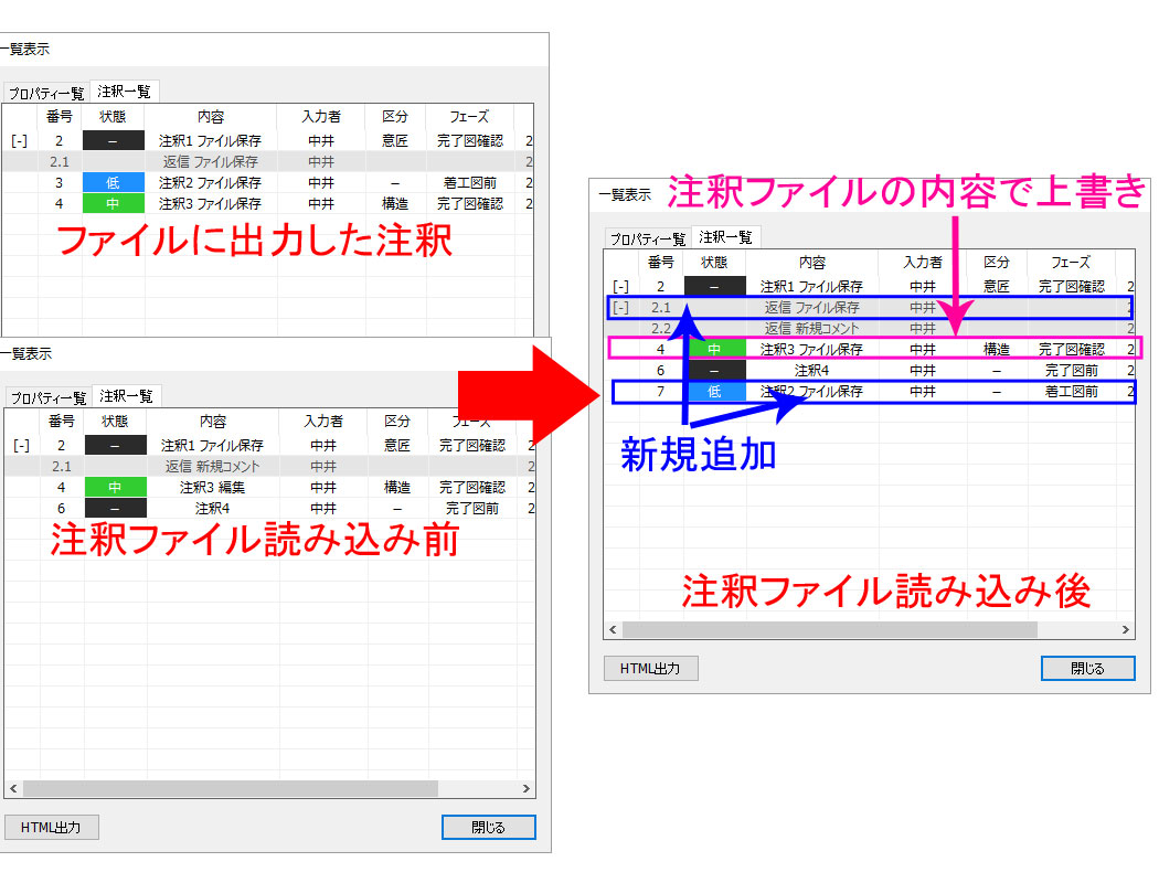ファイルから読み込んだ注釈は既に同じ注釈があれば上書きし、なければ新規で注釈を追加します。