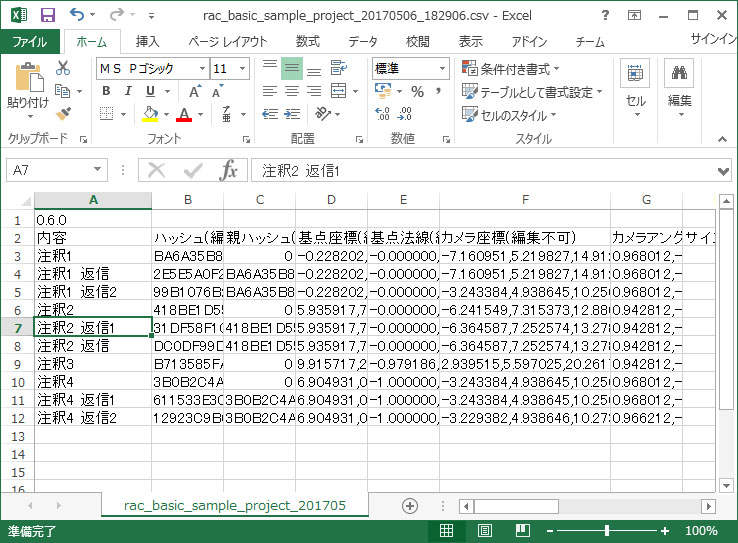 注釈ファイルをcsvで保存した場合、注釈ファイルの編集が可能です。