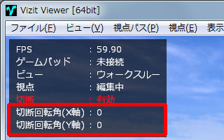 「情報表示」に「切断回転角(X軸)」「切断回転角(Y軸)」の項目が追加されます。