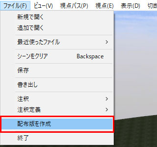 ファイルメニューから「配布版を作成」ボタンを押します。