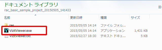 出力先フォルダを開き、VizitViewer.exeを実行すると配布版が起動します。