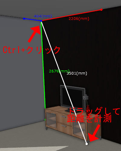 Ctrlを押しながらマウス左クリックすると、そこが計測の始点になります。