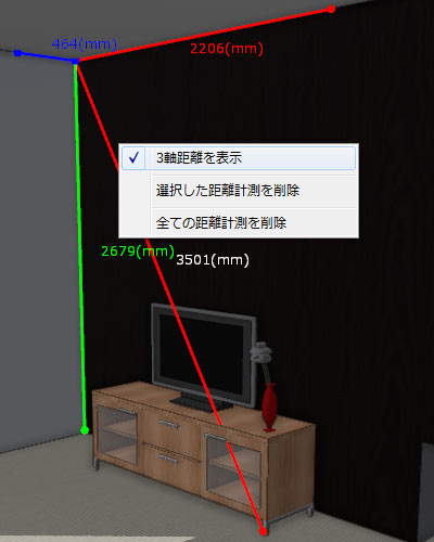 距離計測を選択した状態でマウス左クリックをすると、コンテキストメニューが表示されます。