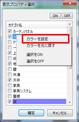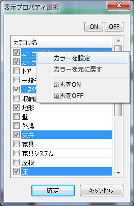 プロパティ選択ダイアログ上で左図の様に標示が変わりますので確定ボタンを押してください。