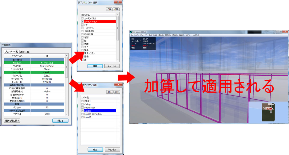 選択したプロパティを持つ部材が割り当てた色で表示されます。