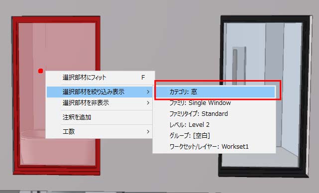 部材を選択して左クリックのメニューを出し「選択部材を絞り込み表示」から絞り込み表示したいプロパティを選択してください。