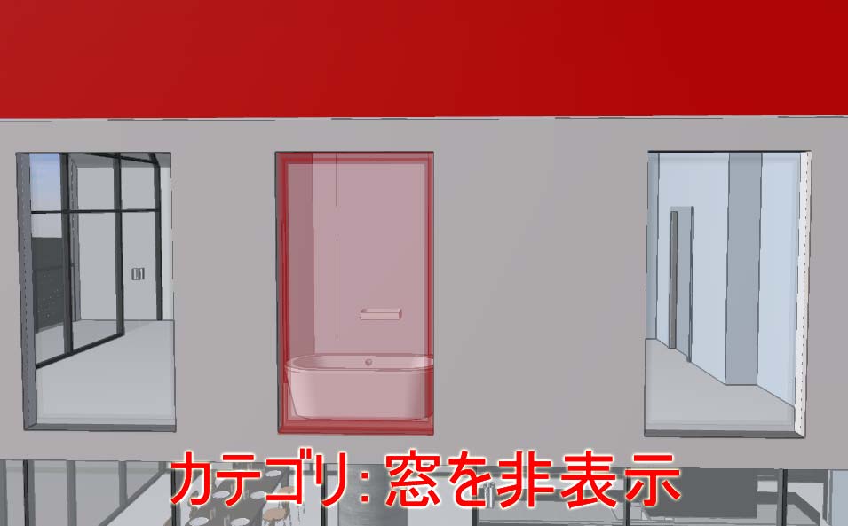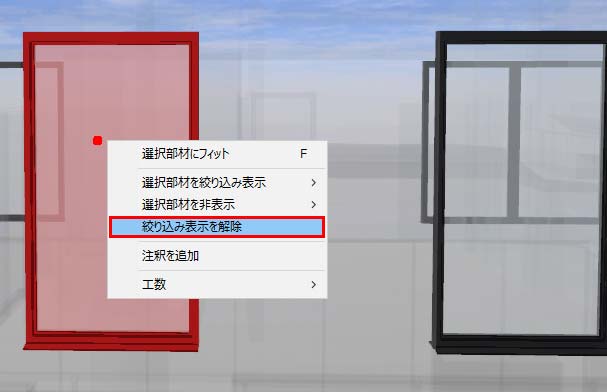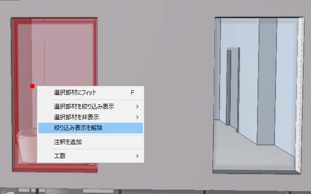 逆に「選択部材を非表示」からプロパティを選択すると選択したプロパティを持つ部材が非表示になります。